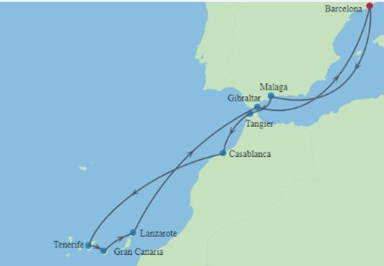 12 Night cruise with 2 ports in Spain, Gibraltar,